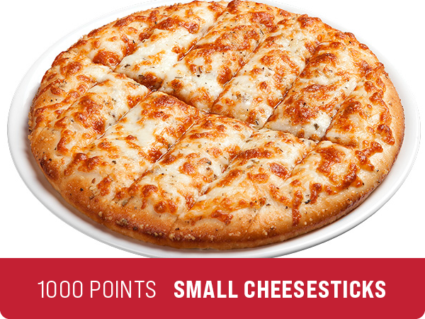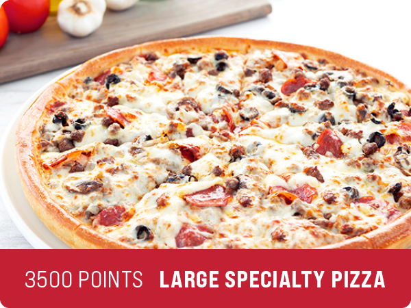 You earn 10 points for every $1 spent. You can redeem for pizza or sides starting at 1,000 points for your first reward and up to 3,500 points.
